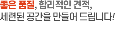 전국적인 네트워크를 기반으로 안정적인 서비스와 빠른 시공이 가능합니다. 어디서든 동일한 높은 퀄리티의 시공을 경험할 수 있도록 운영되고 있습니다.